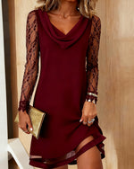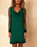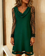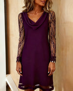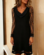 SPECIFICATIONS Style: Elegant, Business Material: 95% polyester, 5% spandex Dress Type: Shift dress Dress Length: Knee Length Neckline: Round Neck Pattern Type: Solid Color Sleeve Type: Regular sleeve Sleeve Length: Long Sleeve Details: Patchwork, See-through Fit Type: Regular Season: Spring, Fall, Winter Occasion: Daily, Work Package Include...