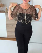SPECIFICATIONS Style: Elegant Material: Chiffon, Polyester Dress Type: Shift dress Dress Length: Midi Neckline: Round Neck Pattern Type: Solid Color Sleeve Type: Regular sleeve Sleeve Length: Short Sleeve Details: Patchwork, Hollow Out Fit Type: Regular Season: Spring, Summer, Fall Occasion: Daily Package Includes: 1 x Dress SIZE TABLE ...