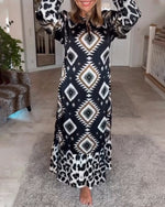 SPECIFICATIONS Style: Casual, Vacation Dress Type: A-Line Dress Length: Maxi Neckline: V neck_V Pattern Type: Print Sleeve Type: Lantern Sleeve Details: Drawstring Fit Type: Regular Material: 95% polyester, 5% spandex Season: Spring, Summer, Fall Occasion: Daily, Vacation Package Includes: 1 x Dress SIZE TABLE (cm) Size Bust Length Sho...