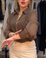 Elegant Collared Sheer Puff Sleeve Blouse
