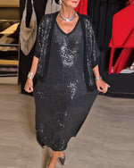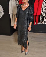 Icon1 Fashion solid color sequined V-neck slit dress set