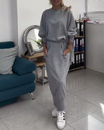Casual solid color high collar pullover mesh dress set