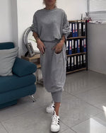 Solid color comfortable and casual two-piece set