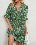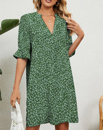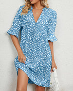 Vacation print V-neck split sleeve dress