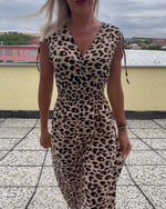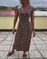 SPECIFICATIONS Style: Casual Material: Cotton Blends Dress Type: Shift dress Dress Length: Maxi Neckline: V neck_V Pattern Type: Print,Leopard Sleeve Length: Sleeveless Details: Slit Fit Type: Regular Season: Spring,Summer Occasion: Daily Package Includes: 1 x Dress SIZE TABLE Size Bust Length CM INCH CM INCH S 97 38.19 130 51.18 M ...