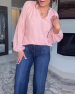 Printed Lantern Sleeve Long-Sleeved Blouse