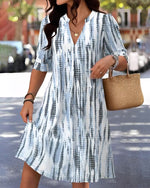 Printed V-Neck Casual Dress