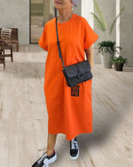 SPECIFICATIONS Style: Casual Material: Cotton Blends Dress Type: Shirt Dress Length: Maxi Neckline: V neck_V Pattern Type: Striped Sleeve Type: Dropped shoulder Sleeve Length: Short Sleeve Details: Slit Fit Type: Loose Season: Spring, Summer, Fall Occasion: Daily Package Includes: 1 x Dress SIZE TABLE (cm) Size Bust Length c...