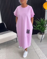 SPECIFICATIONS Style: Casual, Elegant Material: Chiffon, Polyester Dress Type: Pleated Dress Length: Maxi Neckline: Round Neck Pattern Type: Solid Color Sleeve Type: Regular sleeve Sleeve Length: Short Sleeve Fit Type: Regular Season: Spring, Summer Occasion: Daily, Vacation Package Includes: 1 x Dress SIZE TABLE Size Bust Length CM I...