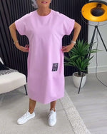 SPECIFICATIONS Style: Elegant Material: 100% Polyester Dress Type: Shift dress Dress Length: Knee Length Neckline: Round Neck Pattern Type: Solid Color Sleeve Type: Regular sleeve Sleeve Length: Short Sleeve Details: Shirred Fit Type: Regular Season: Spring, Summer Occasion: Daily, Vacation Package Includes: 1 x Dress SIZE TABLE ...