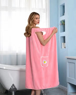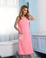 Soft Absorbent Quick-Dry Wearable Bath Towel Skirt with Floral Pattern Pocket
