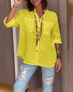SPECIFICATIONS Top Type: Shirt Style: Casual Material: 30% Ramie 70% Cotton Occasion: Daily Neckline: Lapel Pattern Type: Solid Color Sleeve Type: Puff Sleeve Sleeve Length: Long Sleeve Fit Type: Regular Season: Spring,Summer Package Includes: 1 x Shirt SIZE TABLE Size Bust Length CM INCH CM INCH S 97 38.19 65 25.59 M 10...