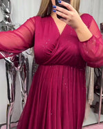SPECIFICATIONS Style: Casual Material: Cotton Blends Dress Type: A-Line Dress Length: Floor Length Neckline: V neck_V Sleeve Type: Lantern Sleeve Sleeve Length: Long Sleeve Fit Type: Regular Season: Spring,Fall Occasion: Daily Package Includes: 1 x Dress SIZE TABLE Size Bust Length CM INCH CM INCH S 92 36.22 137 53.94 M 96 37....