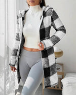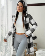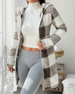 Women's Plaid Fleece Long Sleeve Hooded Coat