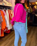 Loose-Fitting Velvet Three-Quarter Sleeve Blouse