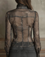 Elegant Printed Zipper Lace Blouse