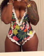 Vacation-Style Printed Deep V-Neck One-Piece Set