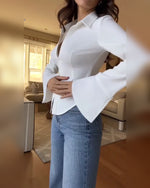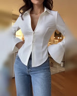 Stylish Long-Sleeved Satin Collar Blouse
