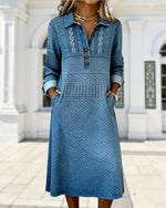SPECIFICATIONS Style: Casual Material: Cotton Blends Dress Type: Shift dress Dress Length: Midi Neckline: Lapel Sleeve Type: Regular sleeve Sleeve Length: Long Sleeve Fit Type: Regular Season: Fall,Winter Occasion: Daily Package Includes: 1 x Dress SIZE TABLE Size Bust Length CM INCH CM INCH S 97 37.4 120 47.24 M 101 39.37 121....