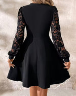 Lace Long-Sleeved V-Neck Velvet Dress