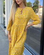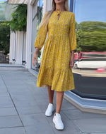 SPECIFICATIONS Style: Casual Material: Cotton Blends Dress Type: A-Line Dress Length: Maxi Neckline: V neck_V Pattern Type: Solid Color Sleeve Type: Puff Sleeve Sleeve Length: Long Sleeve Fit Type: Regular Season: Fall,Winter Occasion: Daily Package Includes: 1 x Dress SIZE TABLE Size Bust Length CM INCH CM INCH S 97 38.19  125 4...