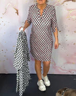 SPECIFICATIONS Style: Casual Material: Denim Dress Type: A-Line Dress Length: Above-knee Neckline: V neck_V Sleeve Type: Regular sleeve Sleeve Length: 3/4 Sleeve Fit Type: Regular Season: Fall,Winter Occasion: Daily Package Includes: 1 x Dress SIZE TABLE Size Bust Length CM INCH CM INCH S 97 38.19 95 37.40 M 101 39.76 96 37.80 L 1...