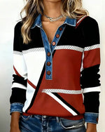 SPECIFICATIONS Top Type: Sweatshirts Style: Chic Material: Cotton Blends,Denim Occasion: Daily,Street Neckline: Shirt Collar Pattern Type: Color Block,Print Sleeve Type: Regular sleeve Sleeve Length: Long Sleeve Fit Type: Regular Season: Fall,Winter Details: Patchwork,Buckle,Chains Package Includes: 1 x Sweatshirt SIZE TABLE Size Bu...