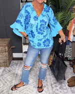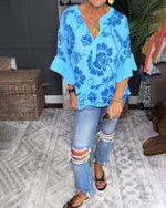 SPECIFICATIONS Top Type: Tops Style: Elegant Material: Cotton Blends Occasion: Daily Neckline: V neck_V Pattern Type: Gradient,Print Sleeve Type: Regular sleeve Sleeve Length: Long Sleeve Fit Type: Regular Season: Spring,Fall Package Includes: 1 x Top SIZE TABLE Size Bust Length CM INCH CM INCH S 92 36.22 65 25.59 M 96 37.8 66.5 26....