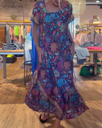 Printed short sleeve round neck long dress