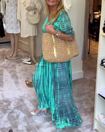 Printed V-neck button-down maxi dress