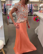 V-Neck Leopard Print Mesh Sequined Patchwork Top