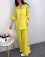 {"id":8670550065395,"title":"Solid color button pocket lace blouse wide leg pants set","handle":"solid-color-button-pocket-lace-blouse-wide-leg-pants-set","description":"\u003ch4 data-mce-fragment=\"1\"\u003e\n\u003cspan data-mce-fragment=\"1\" style=\"color: #000000;\" data-mce-style=\"color: #000000;\"\u003eSPECIFICATIONS\u003c\/span\u003e\u003cbr data-mce-fragment=\"1\"\u003e\n\u003c\/h4\u003e\u003cul\u003e\n\u003cli data-mce-fragment=\"1\"\u003eStyle: Casual\u003c\/li\u003e\n\u003cli data-mce-fragment=\"1\"\u003eTop Type: Blouses\u003c\/li\u003e\n\u003cli data-mce-fragment=\"1\"\u003eCategory: Sets\u003c\/li\u003e\n\u003cli data-mce-fragment=\"1\"\u003eMaterial: Cotton Blends\u003c\/li\u003e\n\u003cli data-mce-fragment=\"1\"\u003ePattern Type: Solid Color\u003c\/li\u003e\n\u003cli data-mce-fragment=\"1\"\u003eNeckline: V neck_V\u003c\/li\u003e\n\u003cli data-mce-fragment=\"1\"\u003eSleeve Type: Regular sleeve\u003c\/li\u003e\n\u003cli data-mce-fragment=\"1\"\u003eSleeve Length: 3\/4 Sleeve\u003c\/li\u003e\n\u003cli data-mce-fragment=\"1\"\u003ePants Type: Wide Leg\u003c\/li\u003e\n\u003cli data-mce-fragment=\"1\"\u003ePants Length: Long\u003c\/li\u003e\n\u003cli data-mce-fragment=\"1\"\u003eWaist Type: Mid Waist\u003c\/li\u003e\n\u003cli data-mce-fragment=\"1\"\u003eFit Type: Regular\u003c\/li\u003e\n\u003cli data-mce-fragment=\"1\"\u003eSeason: Spring, Summer, Fall\u003c\/li\u003e\n\u003cli data-mce-fragment=\"1\"\u003eDetails: Pocket, Buttons\u003c\/li\u003e\n\u003cli data-mce-fragment=\"1\"\u003eOccasion: Daily\u003c\/li\u003e\n\u003cli data-mce-fragment=\"1\"\u003ePackage Includes: 1 x Blouse, 1 x Pants\u003c\/li\u003e\n\u003c\/ul\u003e\u003cbr\u003e\u003cul data-mce-fragment=\"1\"\u003e\u003c\/ul\u003e\u003ch4 data-mce-fragment=\"1\"\u003e\u003cspan data-mce-fragment=\"1\" style=\"color: #000000;\" data-mce-style=\"color: #000000;\"\u003eSIZE TABLE\u003c\/span\u003e\u003c\/h4\u003e\u003ctable style=\"width: 525px; height: 185px;\" border=\"0\" width=\"345\" cellspacing=\"0\" cellpadding=\"0\"\u003e\n\u003ccolgroup\u003e\u003ccol style=\"width: 381.433px;\" span=\"5\" width=\"69\"\u003e\u003c\/colgroup\u003e\n\u003ctbody\u003e\n\u003ctr style=\"height: 18px;\"\u003e\n\u003ctd class=\"xl65\" style=\"height: 32px; width: 52pt; text-wrap: nowrap; text-align: center;\" rowspan=\"2\" width=\"69\" height=\"38\"\u003e\u003cstrong\u003eSize\u003c\/strong\u003e\u003c\/td\u003e\n\u003ctd class=\"xl65\" style=\"width: 104pt; height: 18px; text-align: center;\" colspan=\"2\" width=\"138\"\u003e\u003cstrong\u003eBust\u003c\/strong\u003e\u003c\/td\u003e\n\u003ctd class=\"xl65\" style=\"width: 104pt; height: 18px; text-align: center;\" colspan=\"2\" width=\"138\"\u003e\u003cstrong\u003eWaist\u003c\/strong\u003e\u003c\/td\u003e\n\u003c\/tr\u003e\n\u003ctr style=\"height: 14px;\"\u003e\n\u003ctd class=\"xl65\" style=\"height: 14px; text-align: center;\" height=\"19\"\u003e\u003cstrong\u003eCM\u003c\/strong\u003e\u003c\/td\u003e\n\u003ctd class=\"xl65\" style=\"height: 14px; text-align: center;\"\u003e\u003cstrong\u003eINCH\u003c\/strong\u003e\u003c\/td\u003e\n\u003ctd class=\"xl65\" style=\"height: 14px; text-align: center;\"\u003e\u003cstrong\u003eCM\u003c\/strong\u003e\u003c\/td\u003e\n\u003ctd class=\"xl65\" style=\"height: 14px; text-align: center;\"\u003e\u003cstrong\u003eINCH\u003c\/strong\u003e\u003c\/td\u003e\n\u003c\/tr\u003e\n\u003ctr style=\"height: 21px;\"\u003e\n\u003ctd class=\"xl65\" style=\"height: 14px; border-image: initial; text-wrap: nowrap; text-align: center;\" height=\"19\"\u003eS\u003c\/td\u003e\n\u003ctd class=\"xl65\" style=\"border-image: initial; text-wrap: nowrap; height: 14px; text-align: center;\"\u003e95\u003c\/td\u003e\n\u003ctd class=\"xl65\" style=\"border-image: initial; text-wrap: nowrap; height: 14px; text-align: center;\"\u003e37.4\u003c\/td\u003e\n\u003ctd class=\"xl65\" style=\"border-image: initial; text-wrap: nowrap; height: 14px; text-align: center;\"\u003e67\u003c\/td\u003e\n\u003ctd class=\"xl65\" style=\"border-image: initial; text-wrap: nowrap; height: 14px; text-align: center;\"\u003e26.38\u003c\/td\u003e\n\u003c\/tr\u003e\n\u003ctr style=\"height: 21px;\"\u003e\n\u003ctd class=\"xl65\" style=\"height: 14px; border-image: initial; text-wrap: nowrap; text-align: center;\" height=\"19\"\u003eM\u003c\/td\u003e\n\u003ctd class=\"xl65\" style=\"border-image: initial; text-wrap: nowrap; height: 14px; text-align: center;\"\u003e100\u003c\/td\u003e\n\u003ctd class=\"xl65\" style=\"border-image: initial; text-wrap: nowrap; height: 14px; text-align: center;\"\u003e39.37\u003c\/td\u003e\n\u003ctd class=\"xl65\" style=\"border-image: initial; text-wrap: nowrap; height: 14px; text-align: center;\"\u003e72\u003c\/td\u003e\n\u003ctd class=\"xl65\" style=\"border-image: initial; text-wrap: nowrap; height: 14px; text-align: center;\"\u003e28.35\u003c\/td\u003e\n\u003c\/tr\u003e\n\u003ctr style=\"height: 21px;\"\u003e\n\u003ctd class=\"xl65\" style=\"height: 14px; border-image: initial; text-wrap: nowrap; text-align: center;\" height=\"19\"\u003eL\u003c\/td\u003e\n\u003ctd class=\"xl65\" style=\"border-image: initial; text-wrap: nowrap; height: 14px; text-align: center;\"\u003e105\u003c\/td\u003e\n\u003ctd class=\"xl65\" style=\"border-image: initial; text-wrap: nowrap; height: 14px; text-align: center;\"\u003e41.34\u003c\/td\u003e\n\u003ctd class=\"xl65\" style=\"border-image: initial; text-wrap: nowrap; height: 14px; text-align: center;\"\u003e77\u003c\/td\u003e\n\u003ctd class=\"xl65\" style=\"border-image: initial; text-wrap: nowrap; height: 14px; text-align: center;\"\u003e30.31\u003c\/td\u003e\n\u003c\/tr\u003e\n\u003ctr style=\"height: 21px;\"\u003e\n\u003ctd class=\"xl65\" style=\"height: 14px; border-image: initial; text-wrap: nowrap; text-align: center;\" height=\"19\"\u003eXL\u003c\/td\u003e\n\u003ctd class=\"xl65\" style=\"border-image: initial; text-wrap: nowrap; height: 14px; text-align: center;\"\u003e111\u003c\/td\u003e\n\u003ctd class=\"xl65\" style
