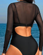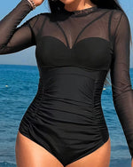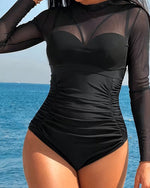 Sunscreen Printed Long-Sleeved One-Piece Swimsuit