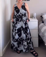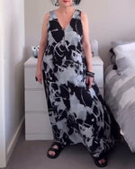 Vacation-Style Printed Deep V-Neck One-Piece Set