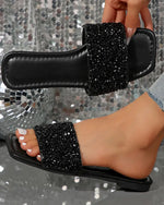 SPECIFICATIONS Style: Casual, Vacation Toe Type: Peep Toe Shoes Type: Flat Sandals Heel Type: Flat Heel Upper Materials: Leatherette Outsole Materials: Rubber Lining Materials: Leatherette Season: Summer Details: Hot Drilling Occasion: Daily, Vacation Package Includes: 1 x Sandal SIZE TABLE Size Foot length CM INCH 35 22.5 8....