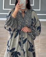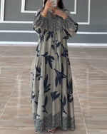 SPECIFICATIONS Style: Vacation, Elegant Material: Spandex, Polyester Dress Type: A-Line Dress Length: Maxi Neckline: V neck_V Pattern Type: Paisley Sleeve Type: Lantern Sleeve Sleeve Length: Long Sleeve Details: Shirred Fit Type: Regular Season: Spring, Summer, Fall Occasion: Daily, Vacation Package Includes: 1 x Dress SIZE TABLE ...