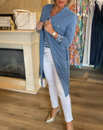 SPECIFICATIONS Style: Casual Material: 5% Spandex, 95% Polyester Dress Type: Shift dress Dress Length: Midi Neckline: V neck_V, Lapel Pattern Type: Print Sleeve Type: Regular sleeve Sleeve Length: Long Sleeve Details: Slit Fit Type: Loose Season: Spring, Summer Occasion: Daily Package Includes: 1 x Dress SIZE TABLE Size ...