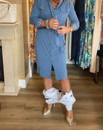 SPECIFICATIONS Style: Casual Material: Cotton Blends Dress Type: Shift dress Dress Length: Midi Neckline: V neck_V Pattern Type: Print Sleeve Type: Regular sleeve Sleeve Length: Long Sleeve Details: Pocket, Slit Fit Type: Loose Season: Spring, Summer, Fall Occasion: Daily Package Includes: 1 x Dress SIZE TABLE (cm) Size Bust...