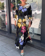 SPECIFICATIONS Style: Casual, Vacation Dress Type: A-Line Dress Length: Maxi Neckline: V neck_V Pattern Type: Print Sleeve Type: Lantern Sleeve Details: Drawstring Fit Type: Regular Material: 95% polyester, 5% spandex Season: Spring, Summer, Fall Occasion: Daily, Vacation Package Includes: 1 x Dress SIZE TABLE (cm) Size Bust Length Sho...