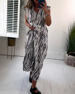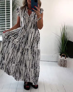 Fly Sleeve Printed V-Neck Dress