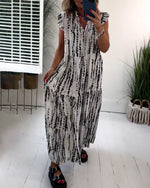 V-neck printed half-sleeved long dress