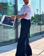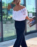 SPECIFICATIONS Style: Elegant Material: Chiffon, Polyester Dress Type: Shift dress Dress Length: Midi Neckline: Round Neck Pattern Type: Solid Color Sleeve Type: Regular sleeve Sleeve Length: Short Sleeve Details: Patchwork, Hollow Out Fit Type: Regular Season: Spring, Summer, Fall Occasion: Daily Package Includes: 1 x Dress SIZE TABLE ...