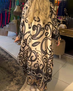 SPECIFICATIONS Style: Vacation, Elegant Material: Spandex, Polyester Dress Type: A-Line Dress Length: Maxi Neckline: V neck_V Pattern Type: Paisley Sleeve Type: Lantern Sleeve Sleeve Length: Long Sleeve Details: Shirred Fit Type: Regular Season: Spring, Summer, Fall Occasion: Daily, Vacation Package Includes: 1 x Dress SIZE TABLE ...