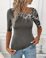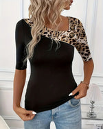 Leopard Print Contrast T-Shirt