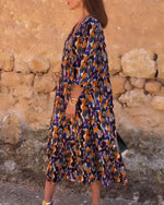 SPECIFICATIONS Style: Casual, Vacation Dress Type: A-Line Dress Length: Maxi Neckline: V neck_V Pattern Type: Print Sleeve Type: Lantern Sleeve Details: Drawstring Fit Type: Regular Material: 95% polyester, 5% spandex Season: Spring, Summer, Fall Occasion: Daily, Vacation Package Includes: 1 x Dress SIZE TABLE (cm) Size Bust Length Sho...