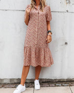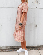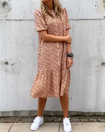 SPECIFICATIONS Style: Elegant Material: Cotton Blends Dress Type: A-Line Dress Length: Maxi Neckline: V neck_V Pattern Type: Leaves Sleeve Type: Puff Sleeve Sleeve Length: Short Sleeve Details: Shirred Fit Type: Regular Season: Spring, Summer Occasion: Daily, Vacation Package Includes: 1 x Dress SIZE TABLE Size US Bust Lengt...