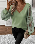 SPECIFICATIONS Top Type: Tops Style: Chic, Sexy Material: 35% Spandex, 65% Polyester Occasion: Daily Neckline: V neck_V Pattern Type: Solid Color Sleeve Type: Regular sleeve Sleeve Length: Long Sleeve Fit Type: Regular Season: Spring, Fall Details: Patchwork, Buttons, Hollow Out Package Includes: 1 x Tops SIZE TABLE Size ...