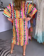 SPECIFICATIONS Style: Casual Material: 5% Spandex, 95% Polyester Dress Type: Shift dress Dress Length: Midi Neckline: V neck_V, Lapel Pattern Type: Print Sleeve Type: Regular sleeve Sleeve Length: Long Sleeve Details: Slit Fit Type: Loose Season: Spring, Summer Occasion: Daily Package Includes: 1 x Dress SIZE TABLE Size ...