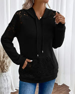 V-Neck Long-Sleeved Lace Casual Hoodie