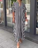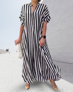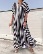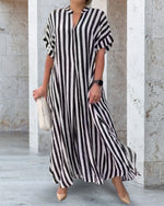 V-neck printed half-sleeved long dress